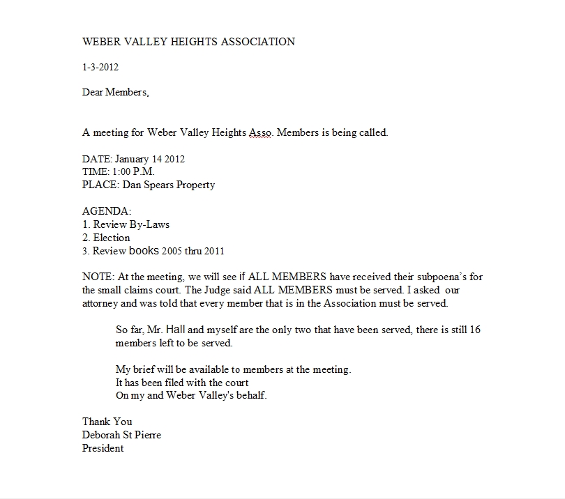 January 3, 2012 Deborah St Pierre still claiming to be President of the failed association called for a group of people to attend a garage meeting held at Dan Spears property.