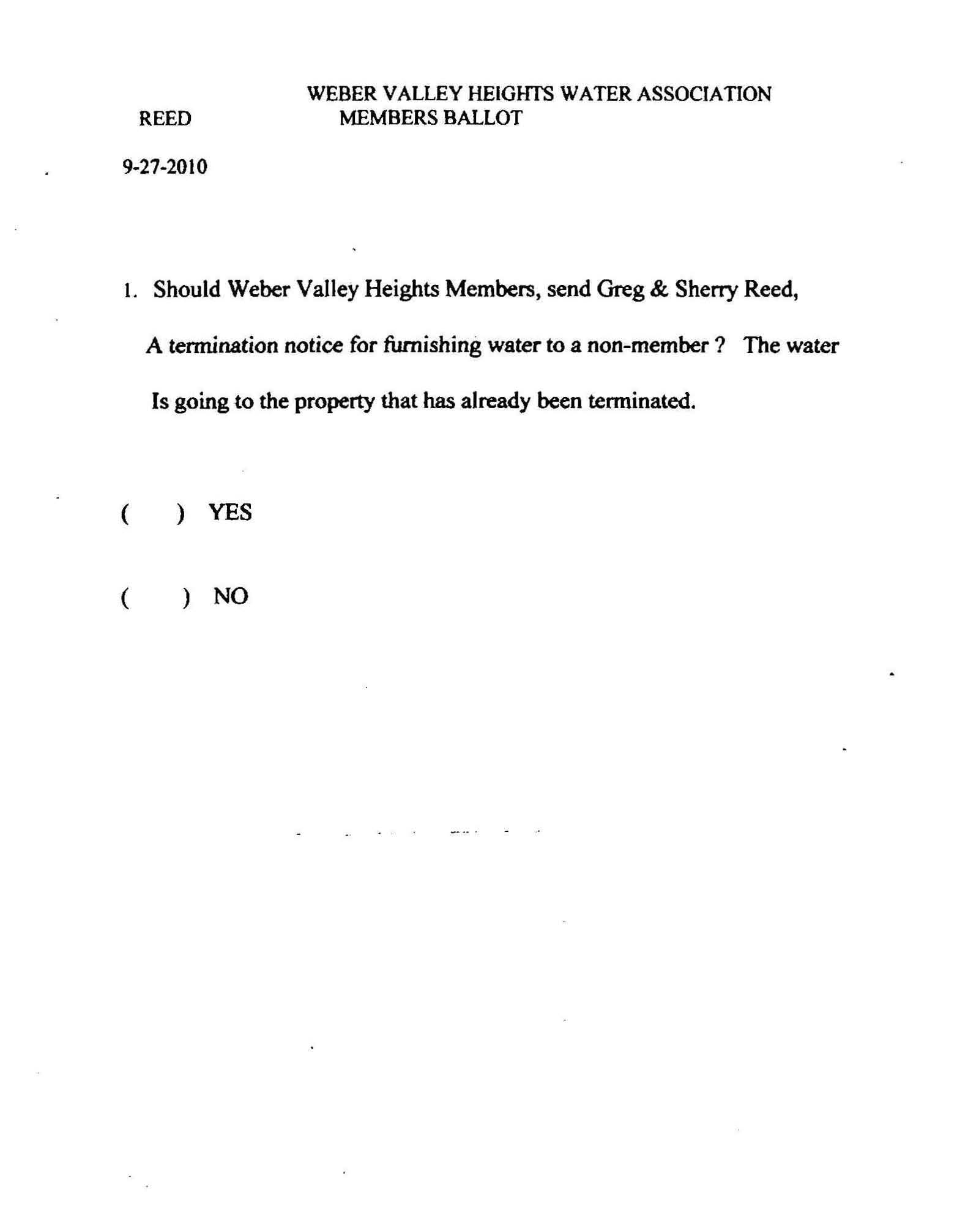 September 27 2010 Deborah St Pierre sent an illegal ballot trying to terminate Reed's water service.