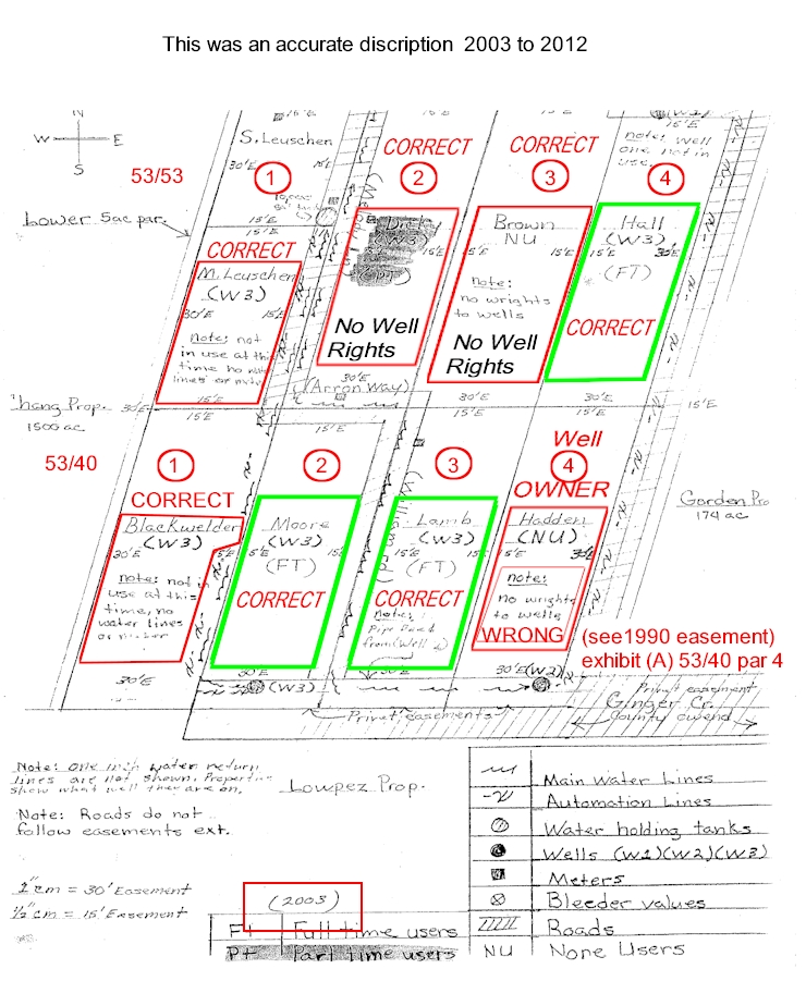 The Second fact is, as a legal standalone entity the group did not possess ownership title for any real property. Nor did it own recorded rights of authority to control two wells or the water rights thereto and or utility service rights to real properties located in the West 1/2 of the West 1/2 of Section 4. The County Recorded 100% fails to have any recorded rights granting the association as a whole any rights to act in the capacity that was noted within those 1973 incomplete bylaws or the 2002 revised bylaws.